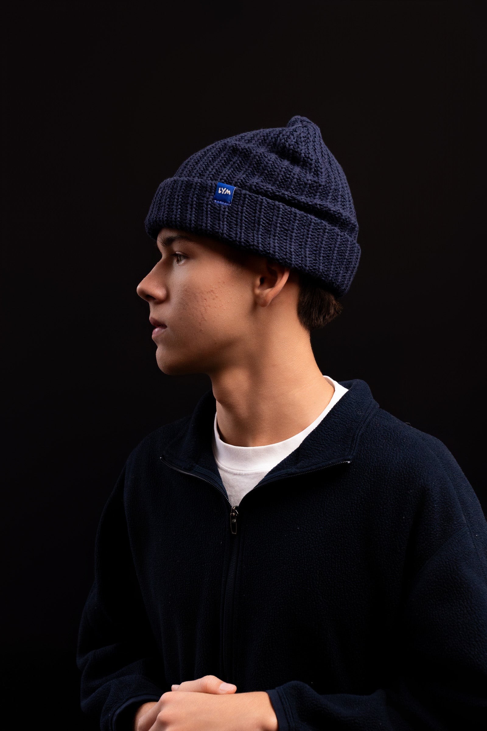 White Wristband w/ Navy Block Logo (10 Pack) -
